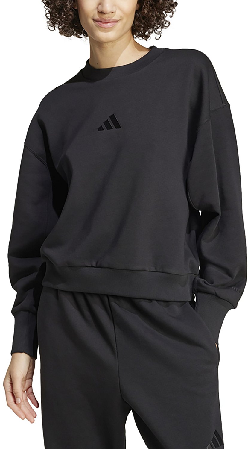 Relax in style with the adidas Women's ALL SZN Fleece Loose Sweatshirt. The cotton and polyester material provides a comfortable feel, while the brushed back interior offers warmth. The embroidered 3Bar logo delivers a stylish touch.