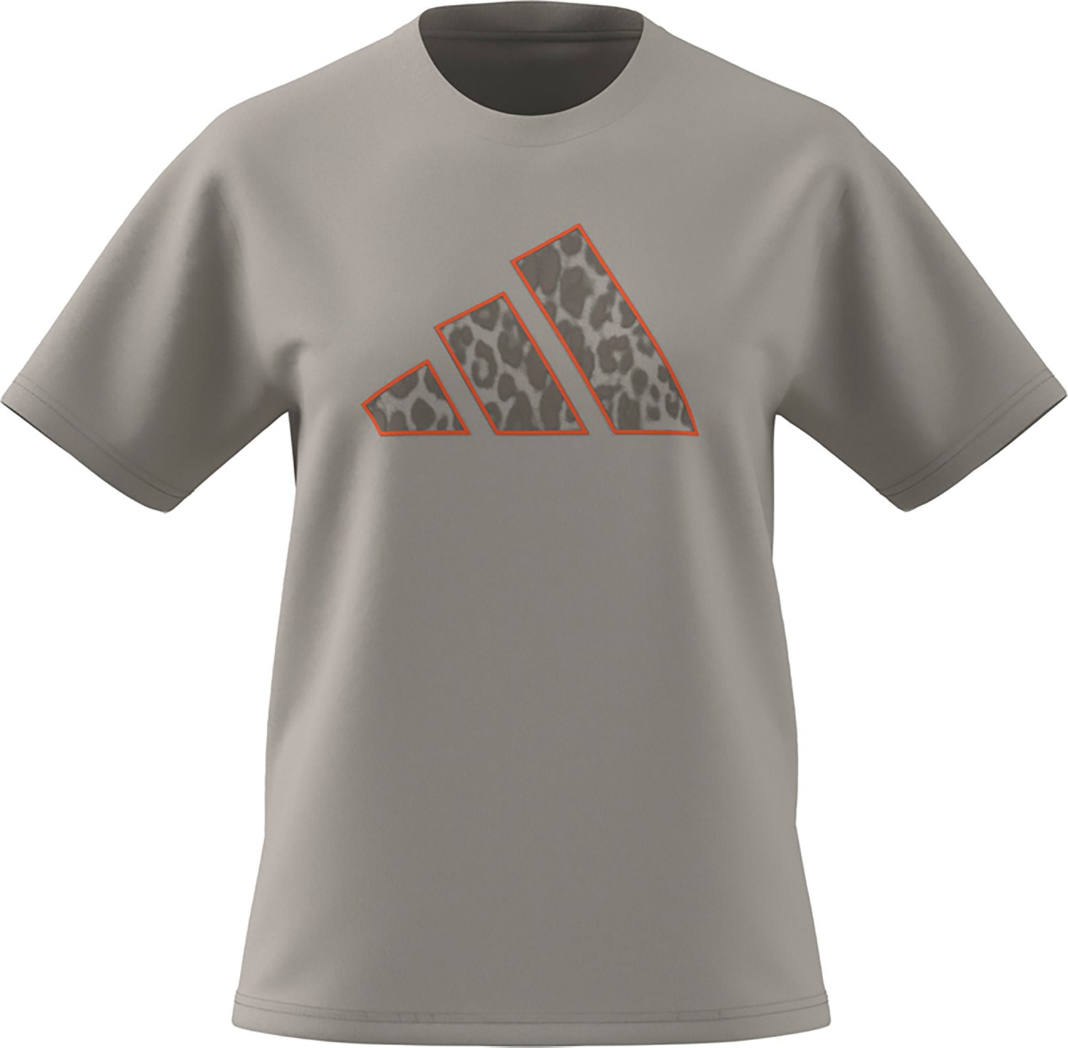 Look your best when you wear the adidas Women's Animal Graphic T-shirt. It is made of 100% cotton. The short sleeves keep you cool, and its collar neckline creates a sophisticated look. The multicolor rubber screen print adds a fun touch.