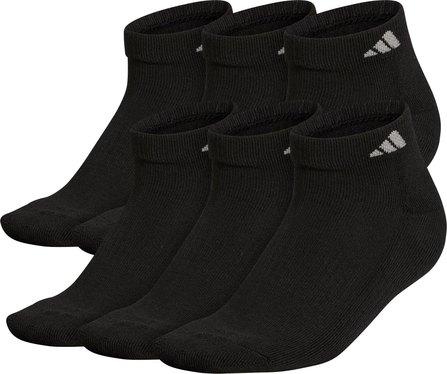 You’ll be walking in comfort in the adidas Women's Athletic Cushioned Low-Cut Socks 6-Pack. These low-cut socks are made from polyester for durability and have moisture wicking yarn to keep your feet dry and comfortable. The arch compression provides added support, while the targeted mesh ventilation provides added breathability.