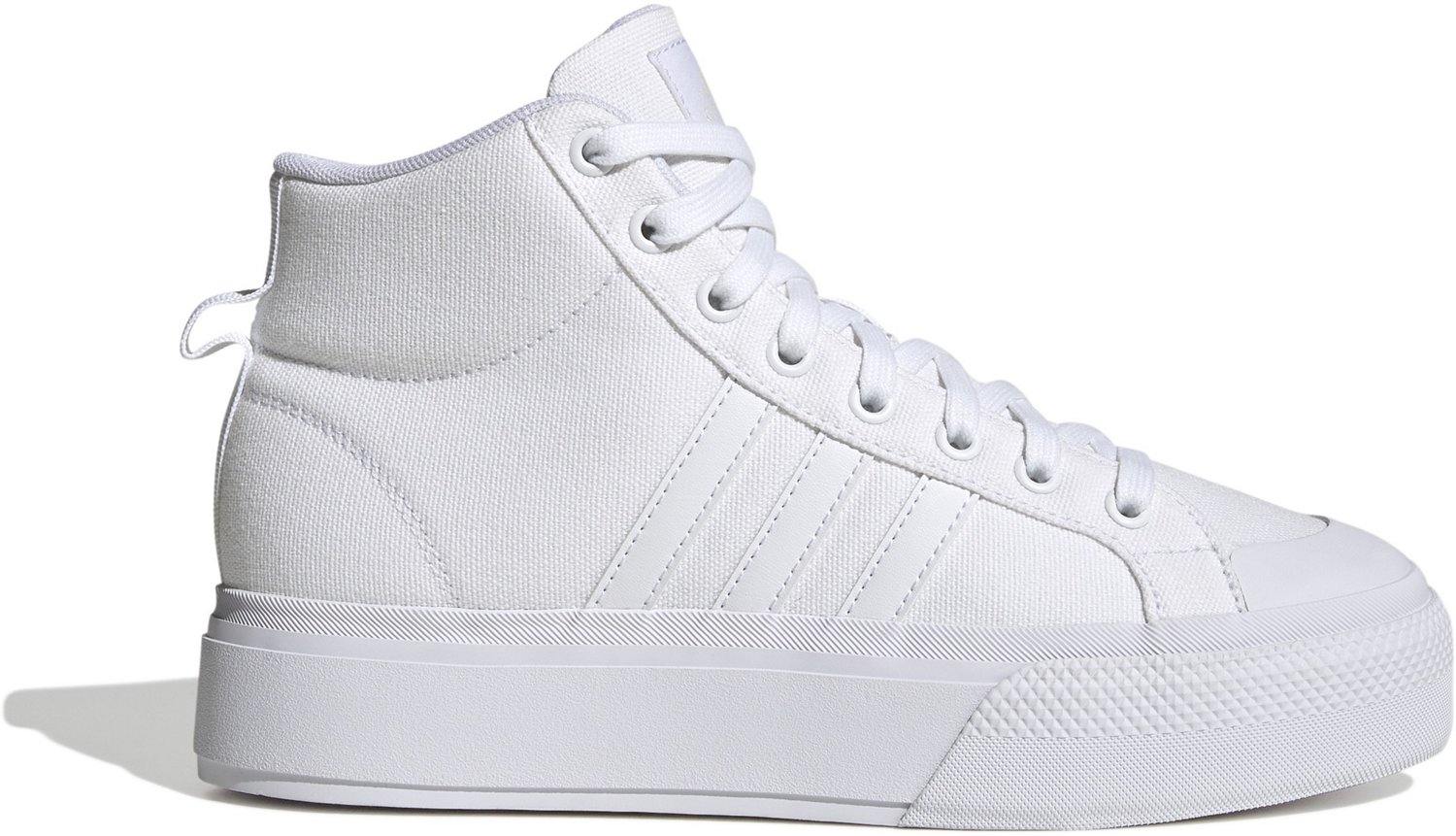 Work on your kickflips with the adidas Women's Bravada 2.0 Mid Top Shoes. The canvas uppers afford durability, while the Cloudfoam midsoles provide cushioned comfort. The chunky platforms offer a stylish look.