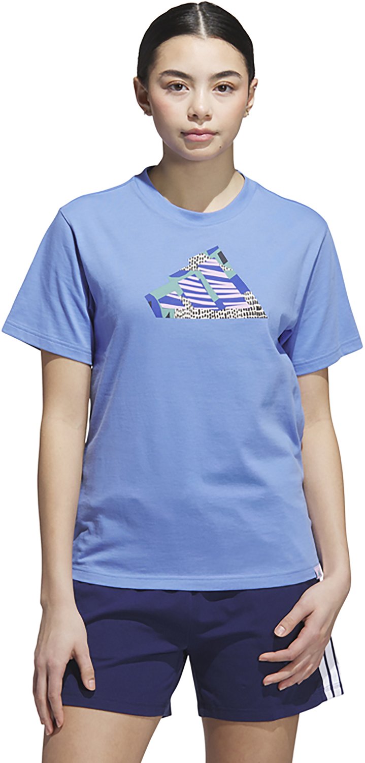 Show off your fun side with the adidas Women's DIY Collage Graphic T-shirt. The cotton material provides a comfortable feel, while the graphic design offers a stylish look.