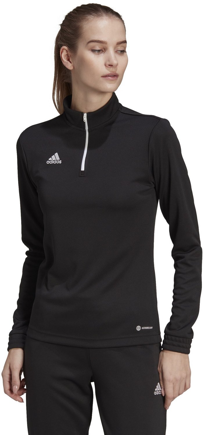 Meet your gym goals with the adidas Women's Entrada 22 Long Sleeve Training Top. The 100% recycled polyester double-knit construction offers a long-lasting wear, while the AEROREADY technology helps keep you dry. The side seek pockets allow you to keep your phone and other belongings safely stored, and the 1/2-zip closure offers custom coverage.