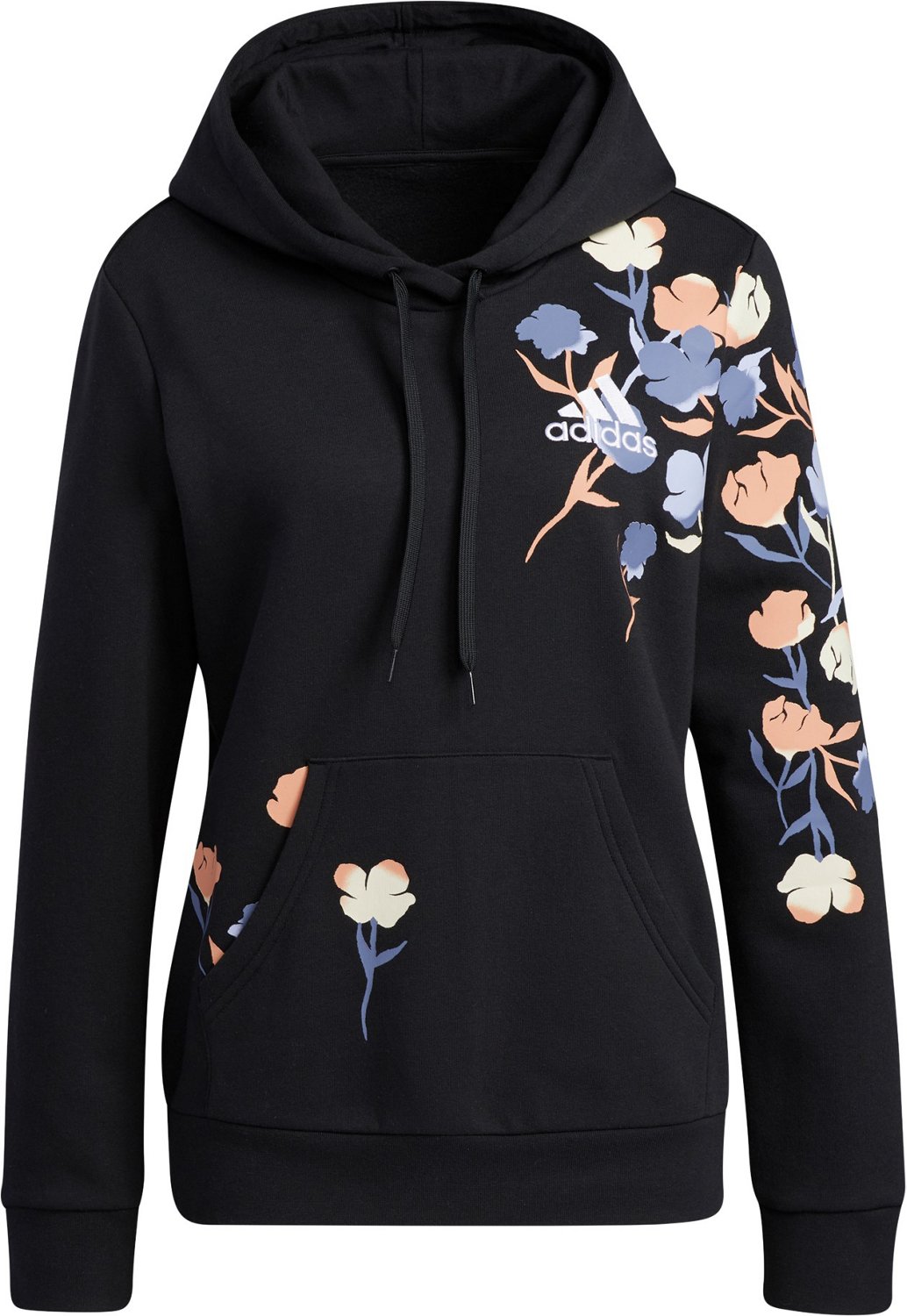 Stay warm and looking cute in the adidas Women's Floral Fleece Hoodie. This hoodie is made from 70% cotton and 30% recycled polyester for comfort and durability. The hood provides added warmth, while the printed Badge of Sport logo graphic on chest adds a stylish look.