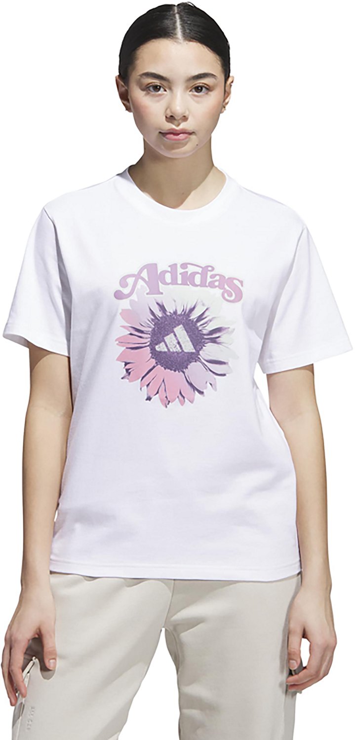 Be one with nature in the adidas Women's Floral Graphic T-shirt. The cotton material provides a comfortable feel, while the graphic design offers a stylish look.