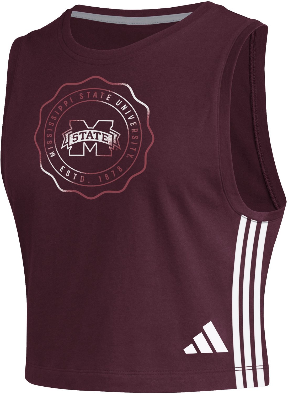Support the Bulldogs wearing the adidas Women's Mississippi State University Fashion Cropped Tank Top. This tank top is made from soft cotton fabric for comfort and has a screen-printed Mississippi State graphic to show your team spirit.
