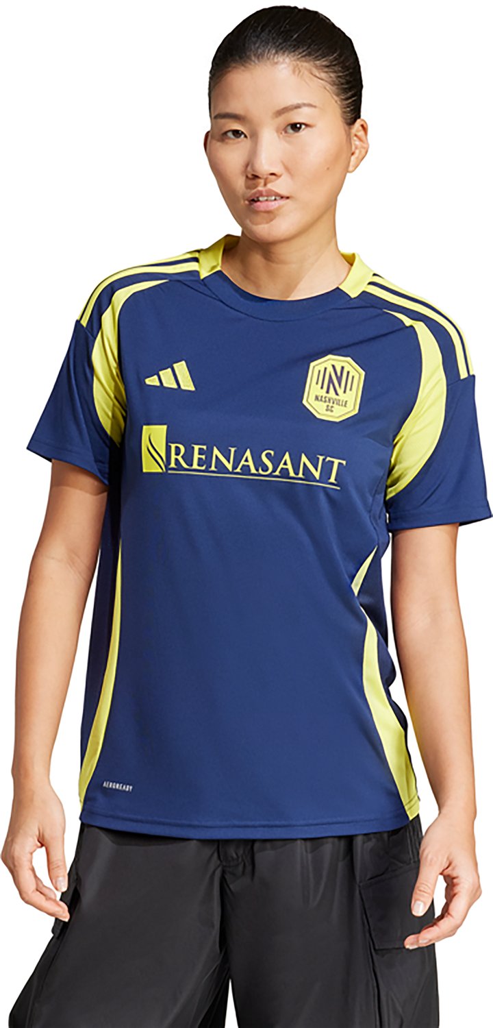 Show off your fan spirit when you wear the adidas Women's Nashville SC '25/'26 Replica Away Jersey. The replica design delivers an authentic appearance, while the team graphics make it clear you're a true fan.