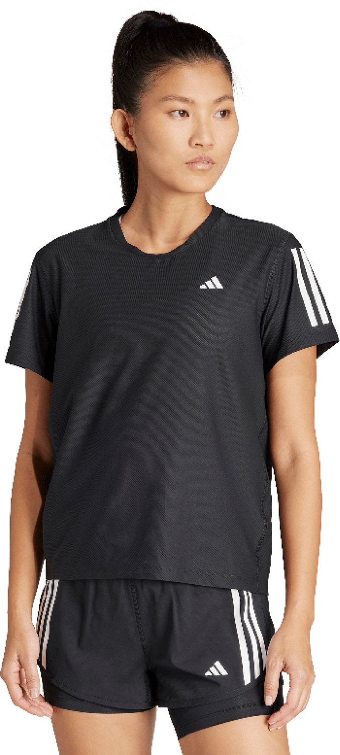 Head out on a run with the adidas Women's Own The Run T-shirt. The polyester and elastane material provides a comfortable feel, while the polygiene odor-control technology maintains freshness. Built-in AEROREADY technology helps keep you cool and dry, and the reflective details promote visibility in low-light conditions.