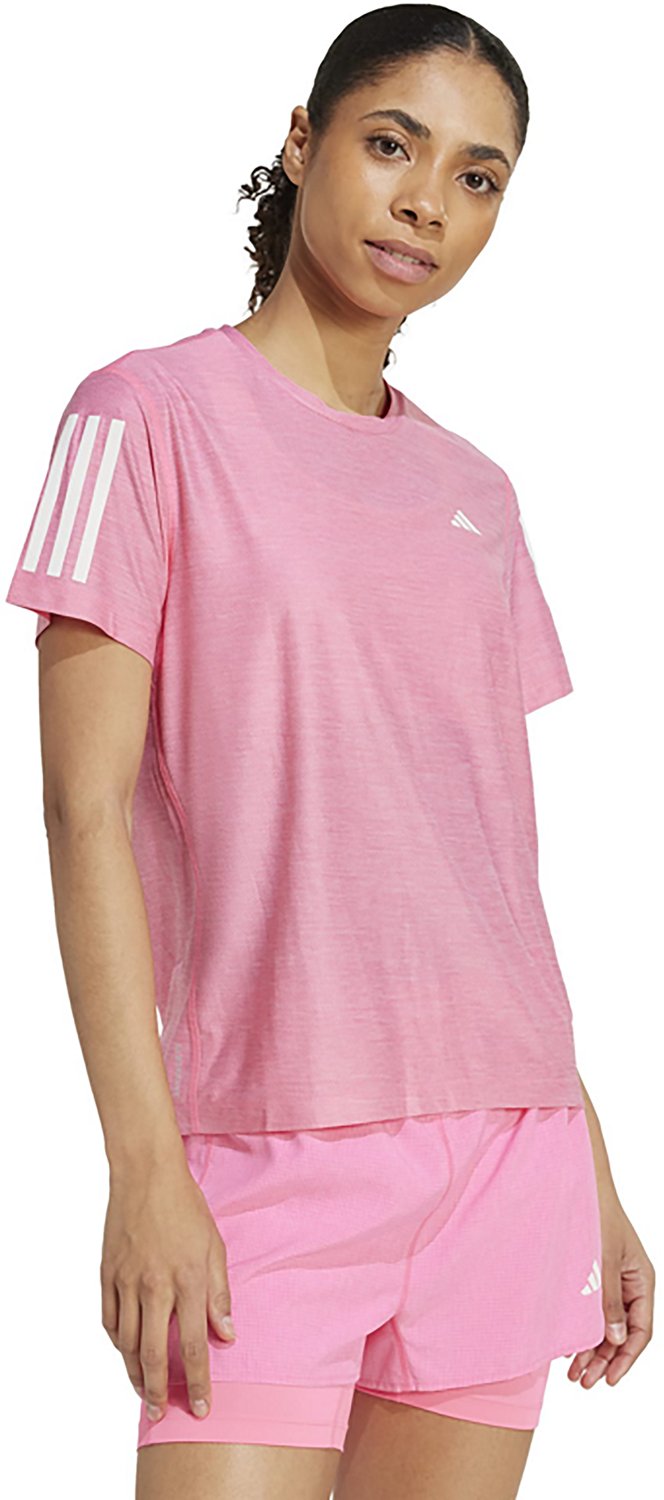 Head out on a run with the adidas Women's Own The Run T-shirt. The polyester and elastane material provides a comfortable feel, while the polygiene odor-control technology maintains freshness. Built-in AEROREADY technology helps keep you cool and dry, and the reflective details promote visibility in low-light conditions.