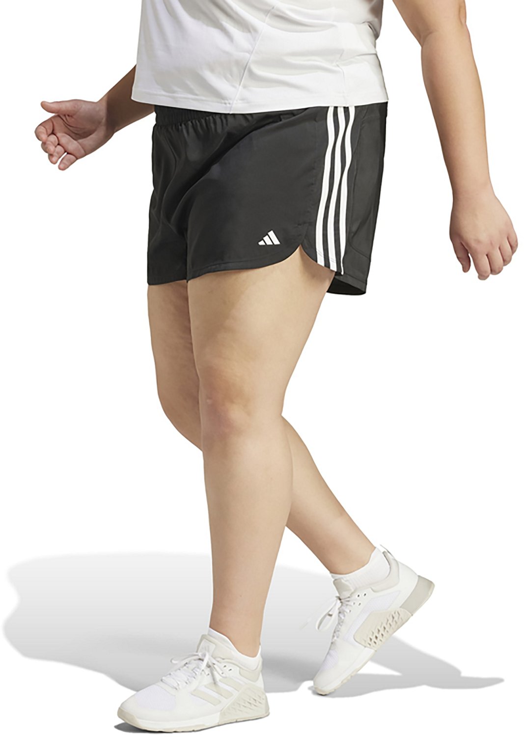 Go all-in during your next workout with the adidas Women's Pacer High-Rise Plus Size Shorts. The polyester material is lightweight and wicks away sweat to help keep you cool and dry, while the high-rise elastic waistband stays in place during intense sessions. An adjustable drawstring provides a custom fit, and side slits allow you to move freely without restriction.