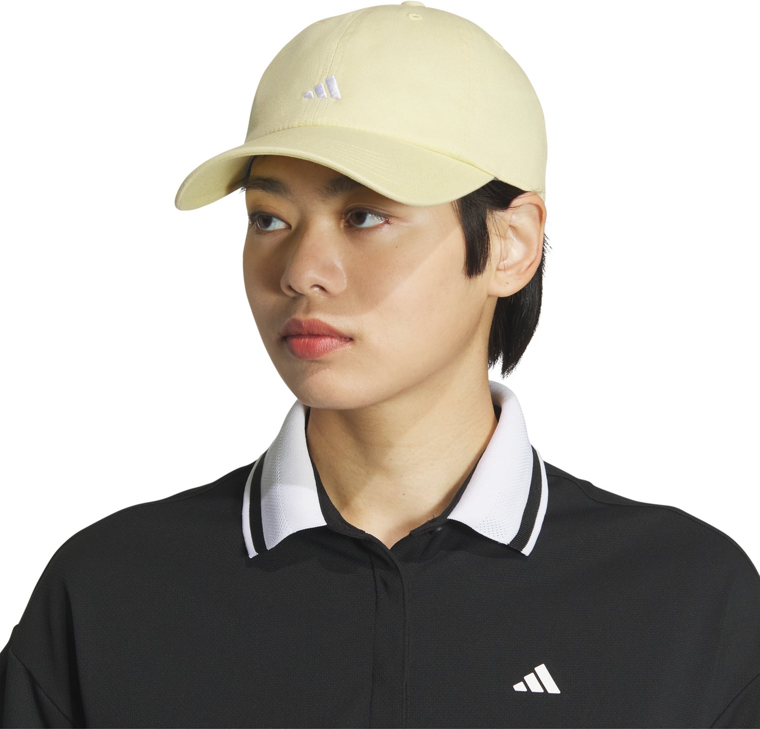 Wear versatile headwear in various settings with the adidas Women's Saturday 3 Cap. The cotton material feels soft around the head, and the quick-drying sweatband provides added comfort while out in hot conditions. The slightly curved brim serves as a sunlight protection structure, and the adjustable back closure lets you set your ideal fit.