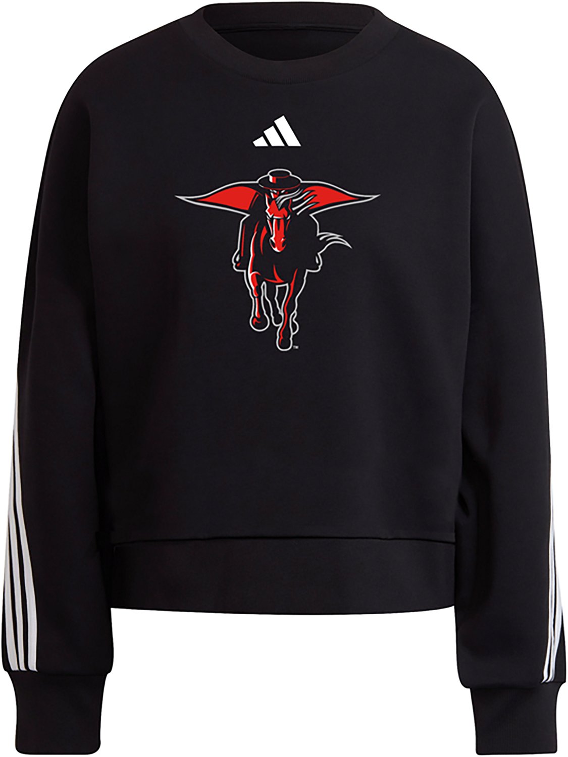 adidas Women's Texas Tech Red Raiders Masked Rider 3-stripe Long Sleeve Crew Pullover