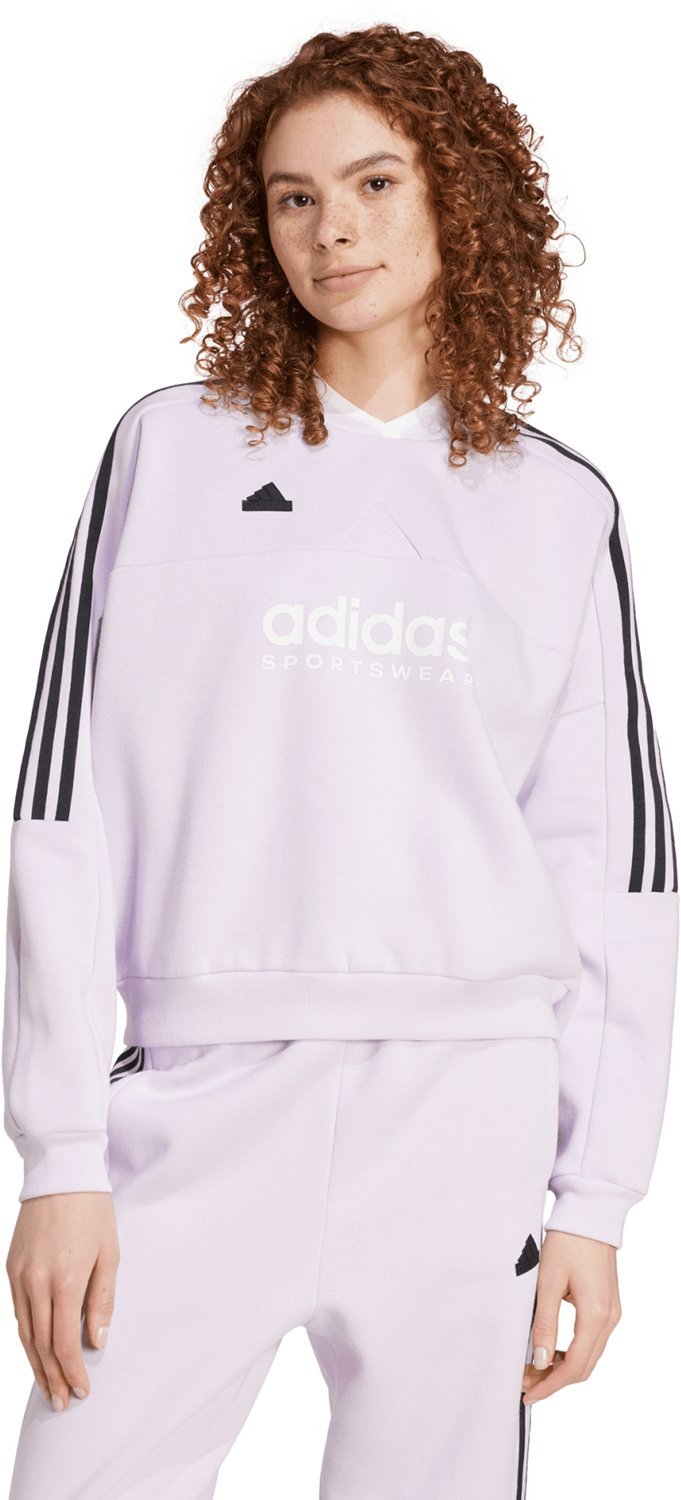 Stay comfy whether you're on the couch or on the go in the adidas Women's Tiro Cut 3-Stripes Fleece Sweatshirt. It is made of 70% cotton and 30% recycled polyester to offer a comfortable feel, and it sports traditional 3-Stripes branding with a small Sportswear logo to finish off the design.
