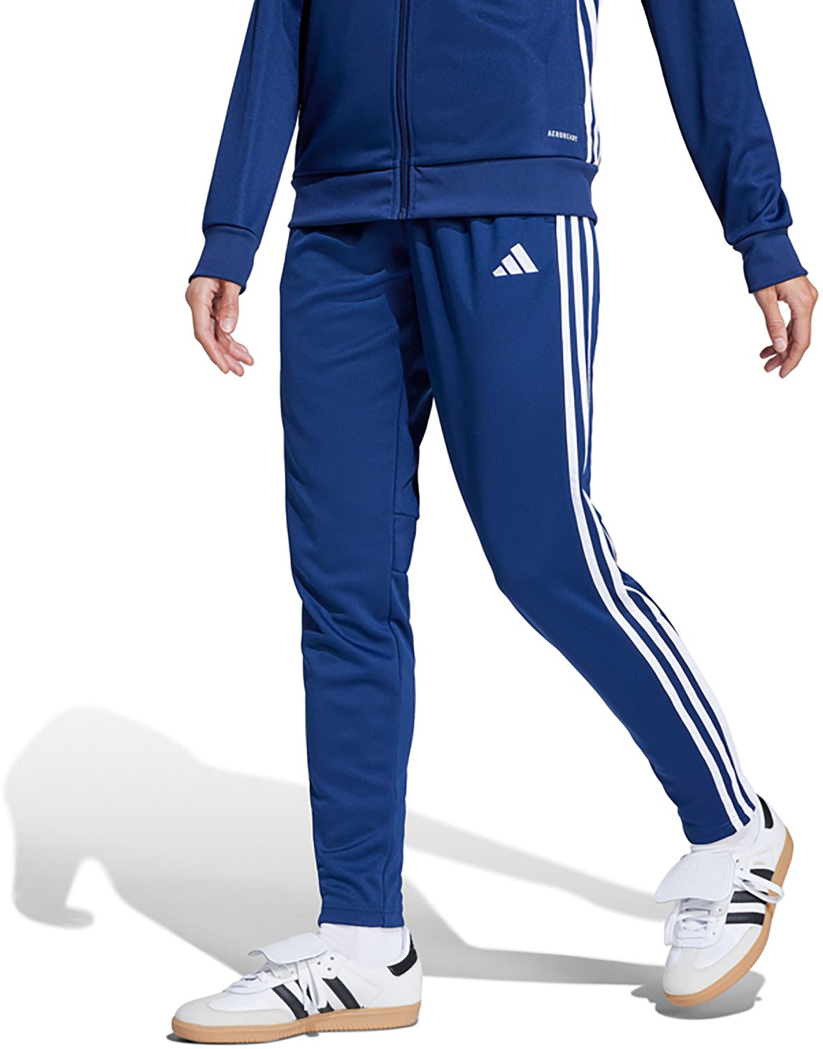 Enhance your workout when you wear the adidas Women's TIRO25 Essentials Training Pants. They are made of 100% recycled polyester. The AEROREADY technology wicks away moisture and dries quickly, and their elastic waist with a drawcord closure creates a comfortable fit. The side zip pockets allow you to store small items.