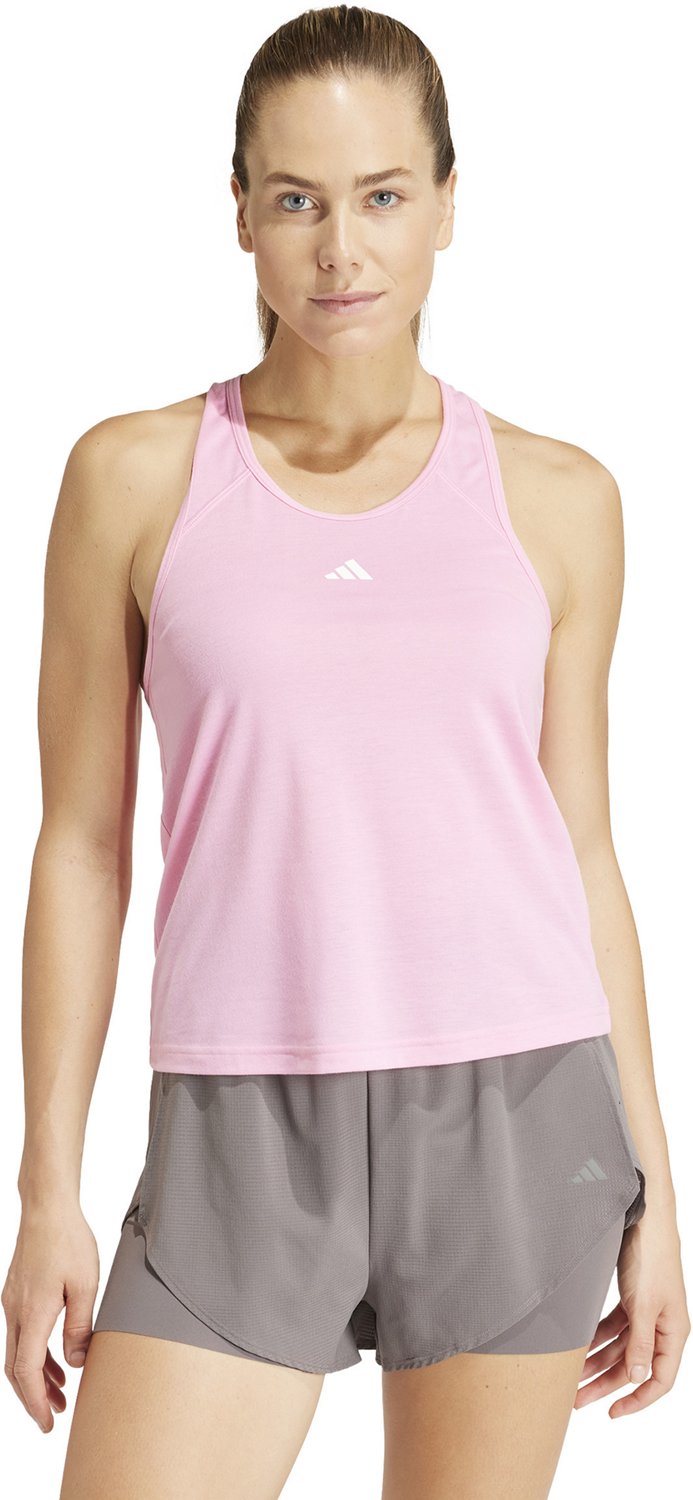 The gym will ne no sweat when you sport the adidas Women's Train Essentials Racerback Tank Top. This top has AEROREADY technology that gets rid of moisture to help you stay cool, and it also has subtle seam placement and a racerback cut to enhance breathability and movement, The recycled polyester and rayon construction withstands wear and tear while remaining soft, and the adidas logo highlights your love for the brand.