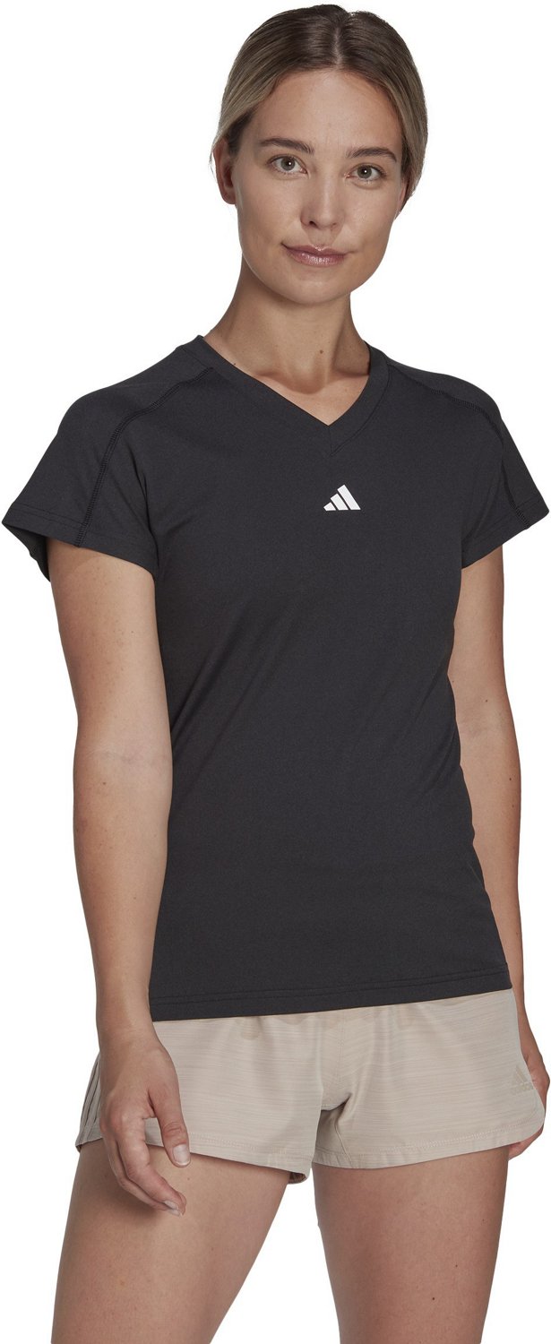Train hard with the adidas Women's Training Essentials Minimal T-shirt. The polyester and elastane single jersey fabric provides a comfortable feel, while the AEROREADY technology helps keep you cool and dry. The FreeLift technology promotes mobility.