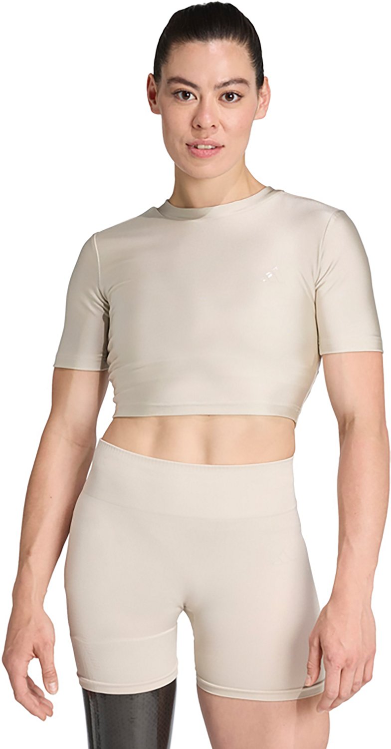 Sweat it out with the adidas Women's Workout Essentials Shine T-shirt. The polyamide and elastane material provides a comfortable feel, while the AEROREADY technology helps keep you cool and dry.