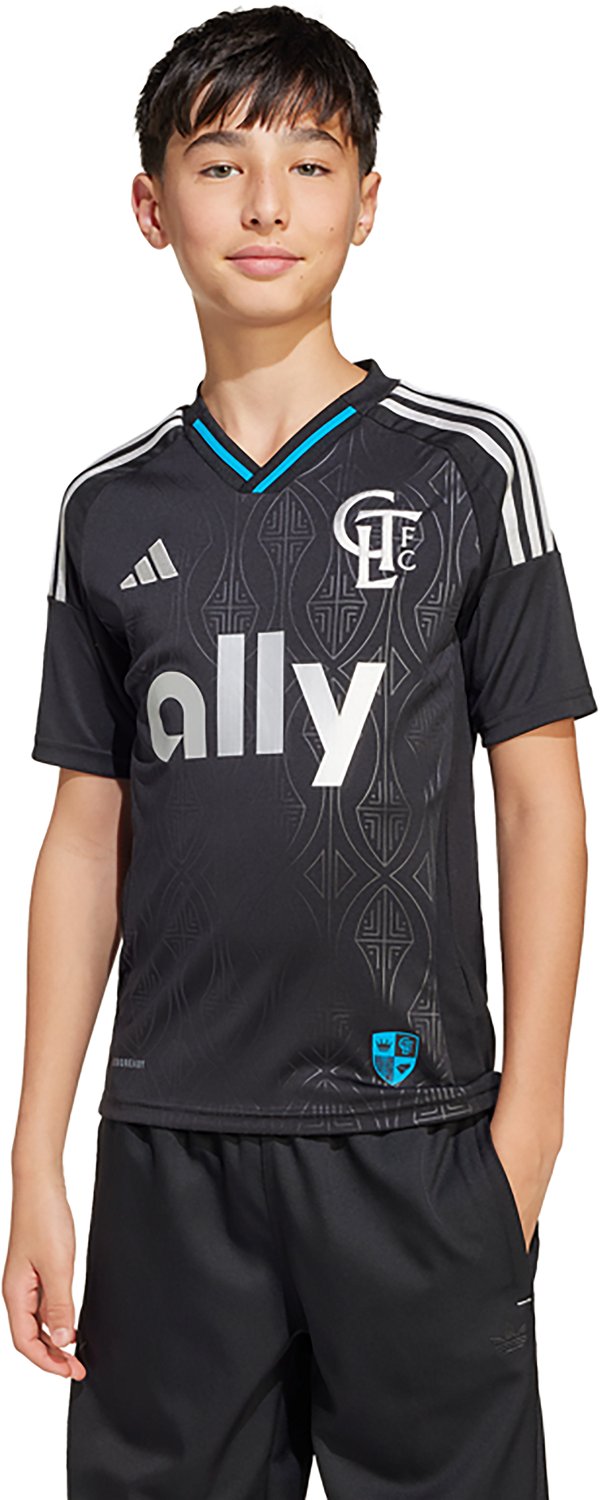 Show off your fan spirit when you wear the adidas Youth Charlotte FC '25/'26 Replica Away Jersey. The replica design delivers an authentic appearance, while the team graphics make it clear you're a true fan.