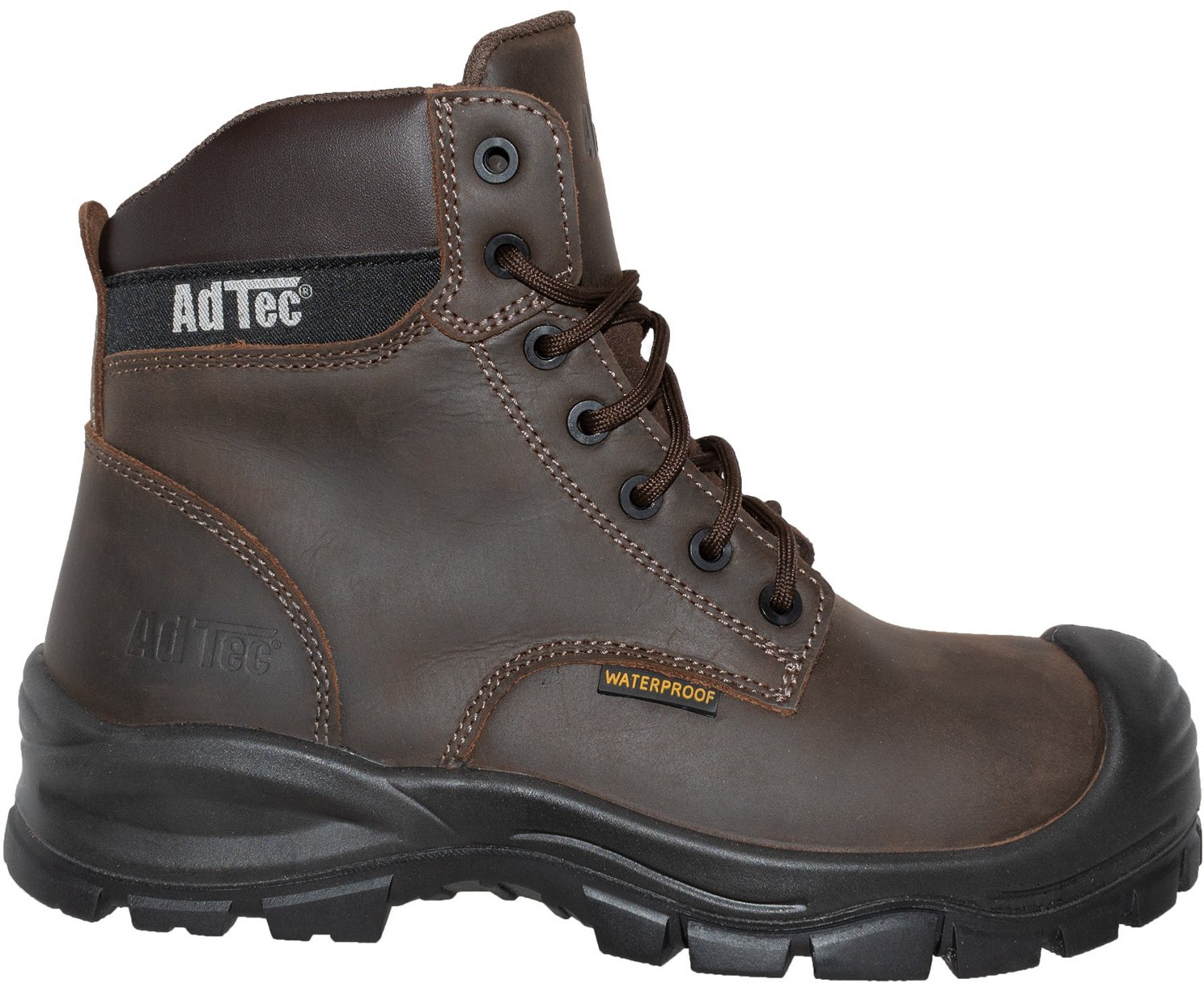 Step onto the job site with confidence when you wear the AdTec Men's Waterproof Composite Toe Work Boots. The Crazy Horse leather uppers help ensure durability and a stylish look. The removable, PU cushioned insoles supply custom comfort. The rubber outsoles offer oil and slip resistant traction, while the waterproof membranes help keep your feet dry in wet conditions. 6-inch height.