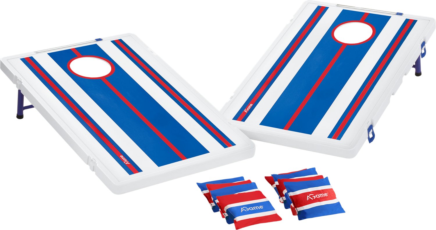 Enjoy some friendly competition with the AGame Deluxe All Weather Cornhole Set. Crafted with PE, steel and durable fabric, this set features weatherproof construction to hold up against the elements, and the boards hook together for simple storage and transport.