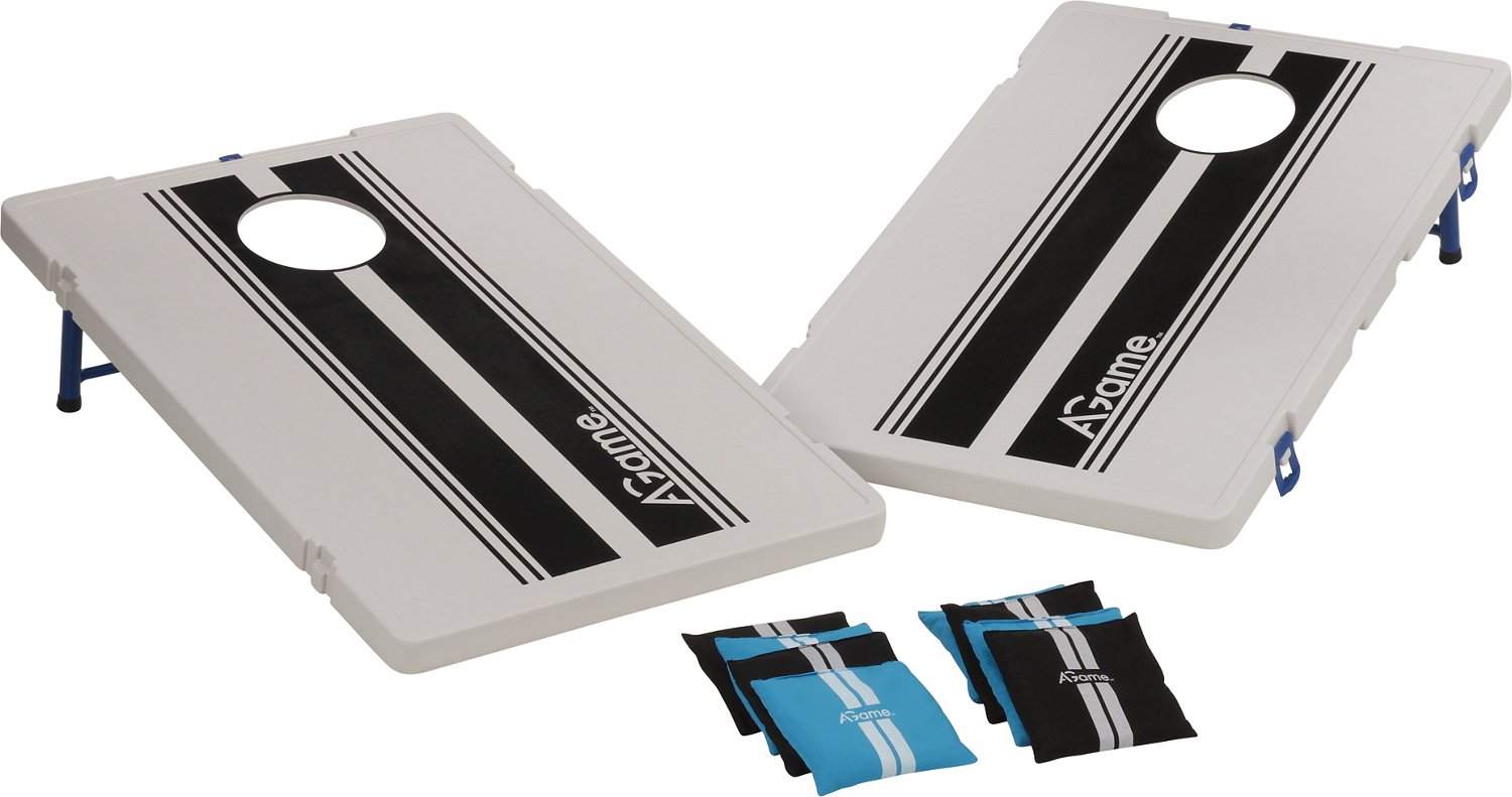 Challenge family and friends to a game of beanbag toss with the AGame Deluxe Beanbag Toss Game. When you're done playing, fold up the legs and lock the sturdy, all-weather PE target boards together to take the action with you on the go.