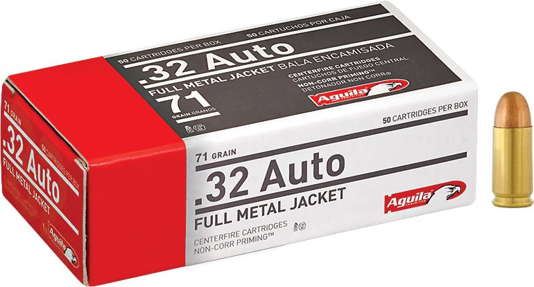 Features: .32 Auto caliber,71 grains,50-round box,Full metal jacket,Noncorrosive priming