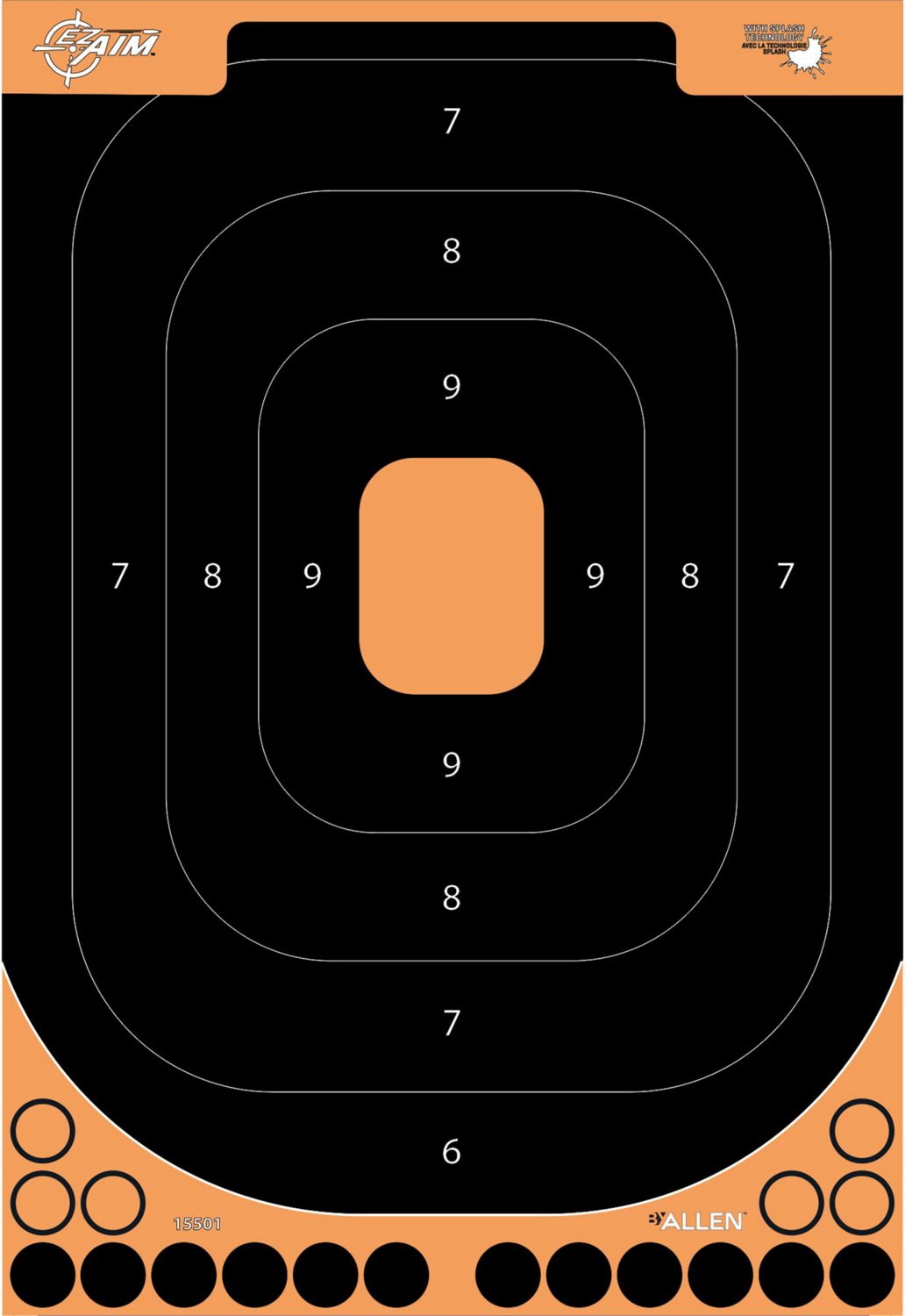 Master your handgun with the help of an Allen Company EZ Aim 14x22in Splash Firearm Trainer Kit. Adhesive targets attach securely to the corrugated backstop, while Splash Technology provides visual feedback on every hit. Replacement rings and bullet hole covers let you easily refresh your target without replacing it.
