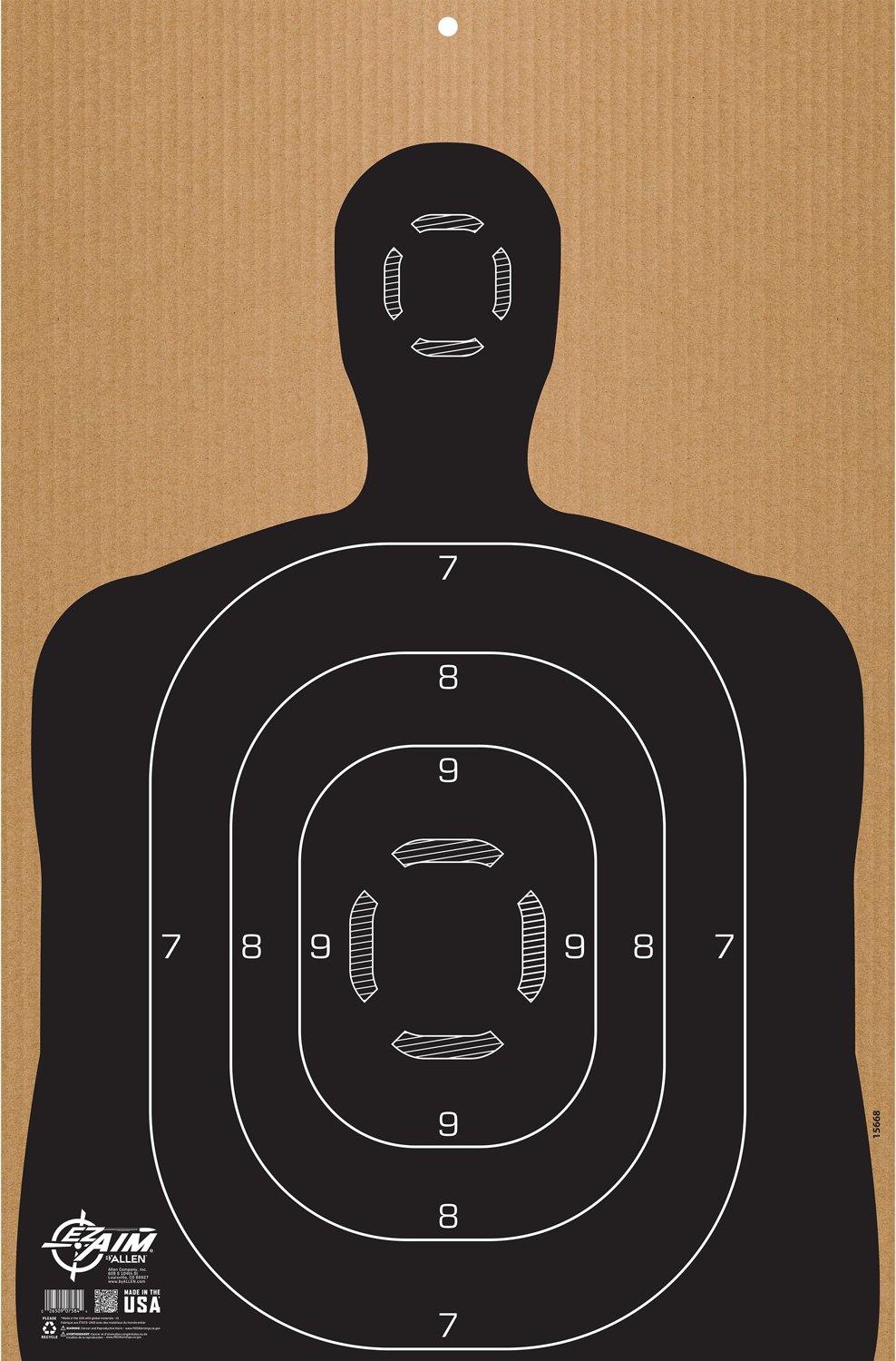 Hone your skills on the range with help from the Allen Company EZ Aim® B27 Silhouette Corrugated 23 in x 35 in Shooting Target. The high-quality corrugated stock construction stands up to repeated use, and the B27 human silhouette with precision scoring lines to help improve your accuracy.