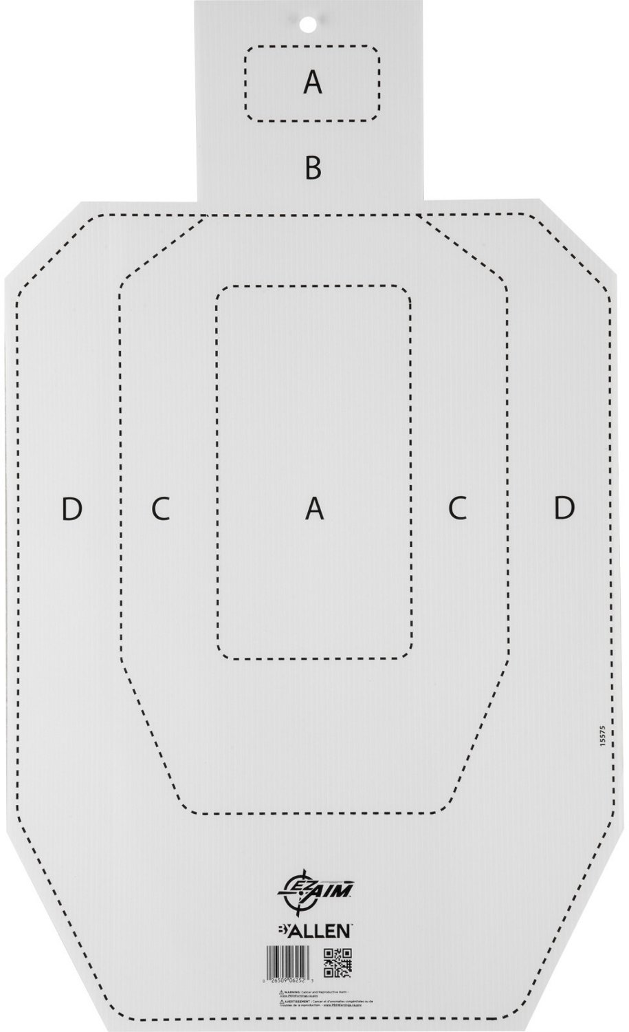 Practice your shooting skills with the Allen Company EZ Aim Coroplast IPSC Silhouette 18 in x 30 in Shooting Target. Made with coroplast materials on each side for durability, this target comes with a center-of-mass zone with printed dotted lines to allow easy visibility.