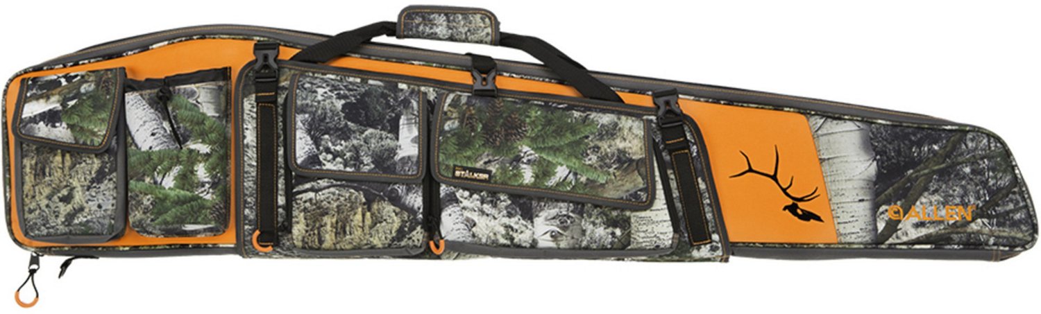 Secure your firearm while on-the-go with the Allen Company Gear Fit Pursuit Bull Stalker 48in Rifle Case. This sturdy travel case stores a long gun with scope. Large exterior pockets stow ammunition, gear and accessories Deluxe foam cushioning protects against wear and tear, while an easy-to-clean liner simplifies maintenance. An all-over camouflage print helps you stay concealed while in the field.