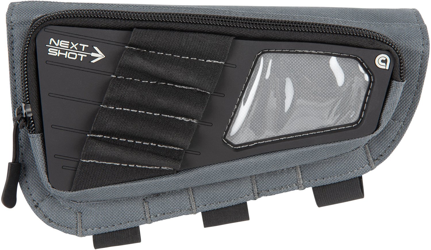 Carry extra equipment with the Allen Company Next Shot Cody Buttstock Pouch. The exterior elastic loops hold up to four .223 to 300 Winchester-sized rifle cartridges, while the clear plastic window insert allows for quick reference to windage and elevation notes. The soft exterior fabric provides comfort, and the adjustable strap system delivers a custom fit.