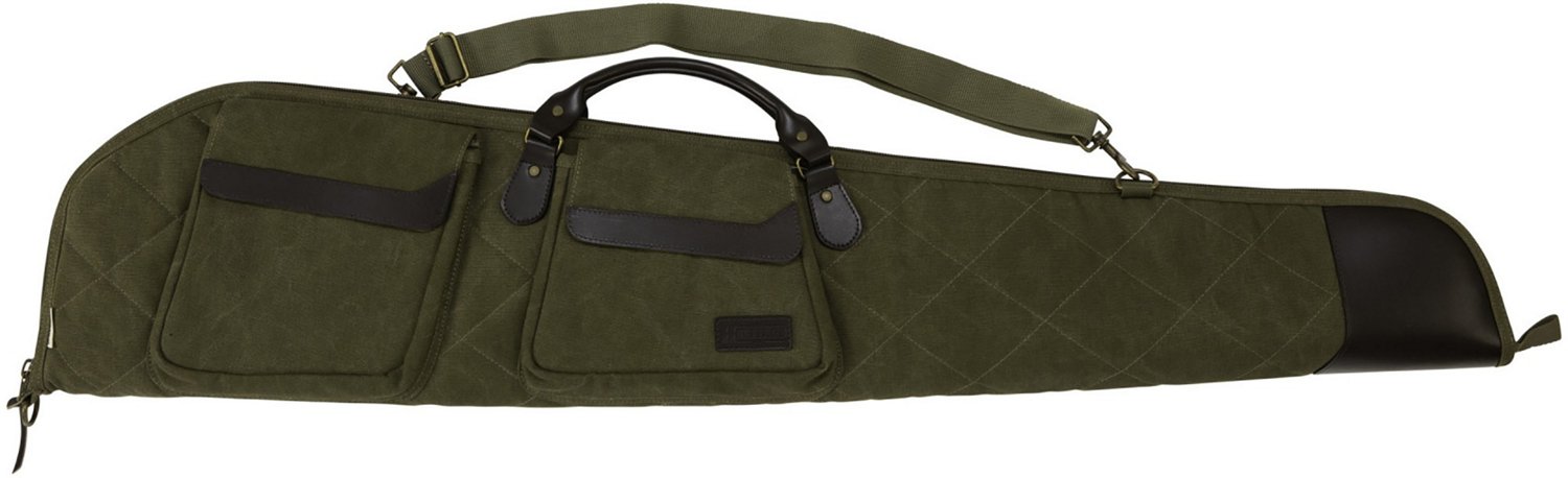 Keep your rifle safe in the Allen Company North Platte Heritage 48 in Rifle Case. The cotton canvas quilted exterior with a split leather trim looks good and is durable, and the hanging loop lets you easily hang up the gun in your gun case or cabinet when it is not being used. The adjustable and removable shoulder strap and rolled handles are comfortable to carry, and the plush tricot lining helps prevent scratches and damage.