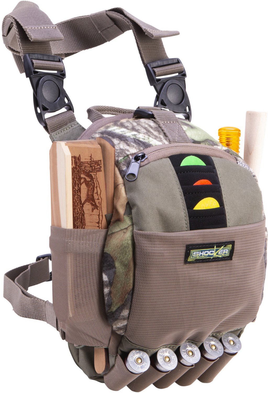 Get ready for turkey season with the Allen Company Shocker Cut-N-Run Turkey Pack. This versatile pack can be worn around your waist, chest or thigh and is specifically designed to store all your calls. Elastic shell loops and a back zipper panel secure your gun and extra shells. The magnetic closure allows quick, quiet access to bag contents.