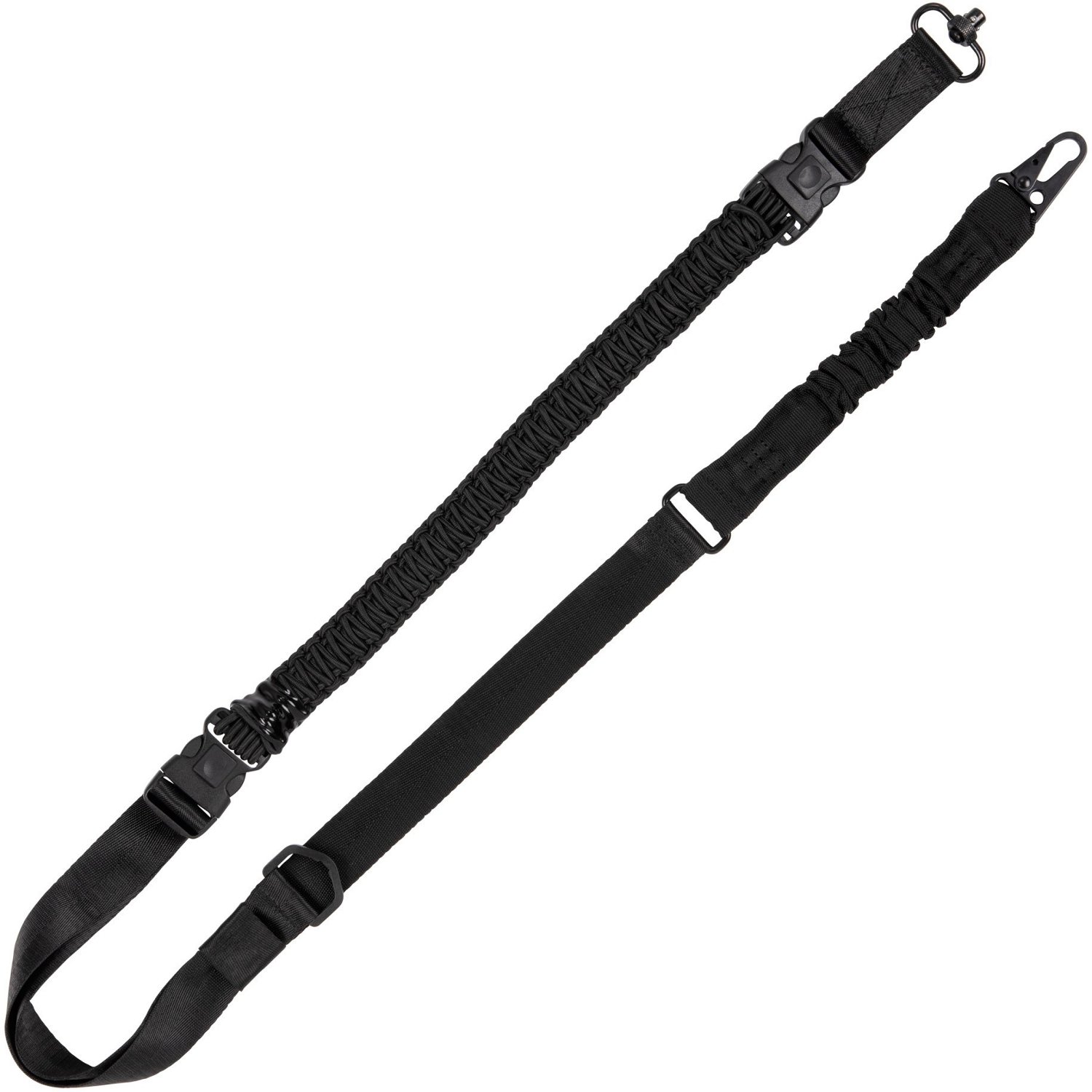 Keep your hunting gun convenient with the Allen Company Tac-Six Citadel Single & Double Point Paracord Sling. The stretchy paracord construction provides flexibility to carry as you like. The push-button and swivel attachments let you use the sling as a single- or double-point sling.