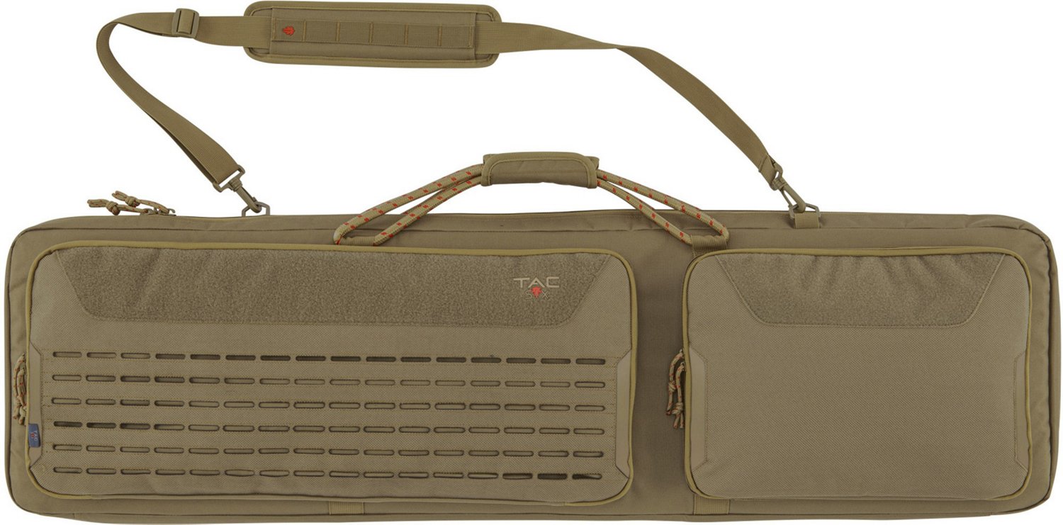 Bring your tactical rifle to the shooting range in the Allen Company Tac-Six Laser-Cut Molle Front Lockable 46 in Tactical Gun Case. The 600-denier polyester exterior withstands the elements, and the 600-denier polyester interior helps prevent scratches and dings to your firearms. A laser-cut MOLLE panel system, elastic loops and a large front pocket provide additional space for your extra shooting gear and accessories, and the lockable design keeps your firearms safe from other people.