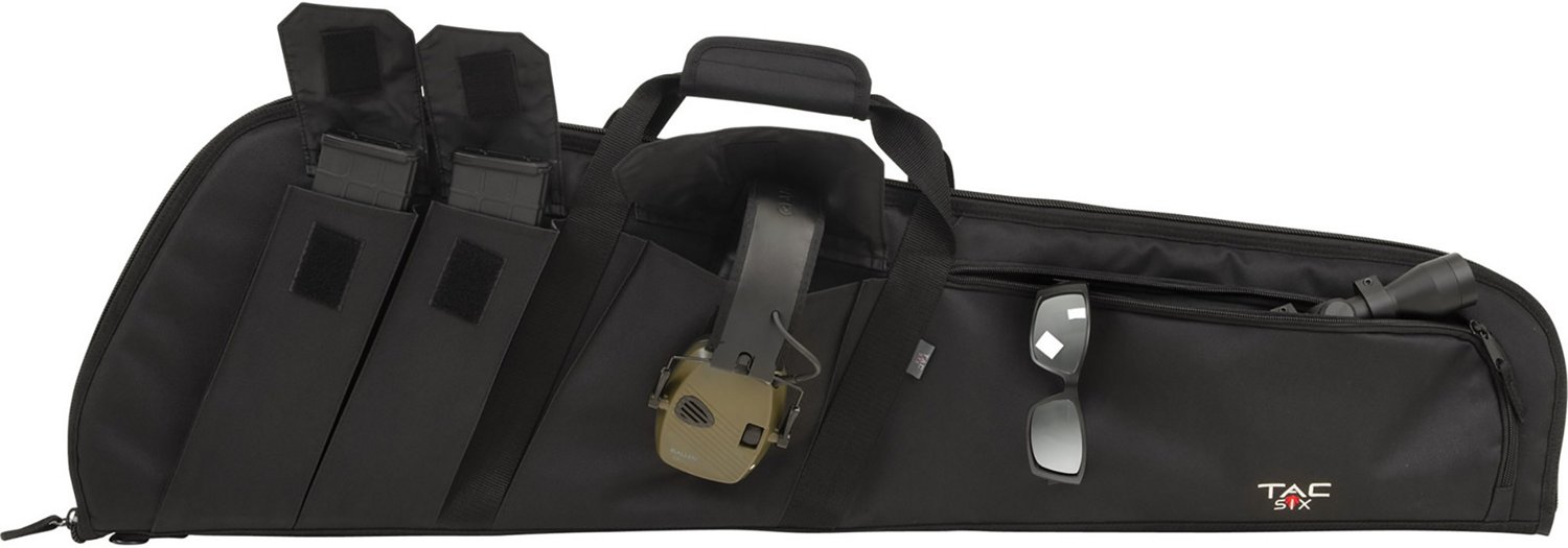 Put away your firearm after use in the Allen Company Tac-Six Wedge Tactical 41 in Gun Case. The soft knit lining and thick padding in the interior prevents scratches and dents, and the multiple exterior pockets hold your excess mags and gear. The lockable design makes sure no one can get into the case without your permission, and the padded hook-and-loop handle make it easy to carry and store your firearm.