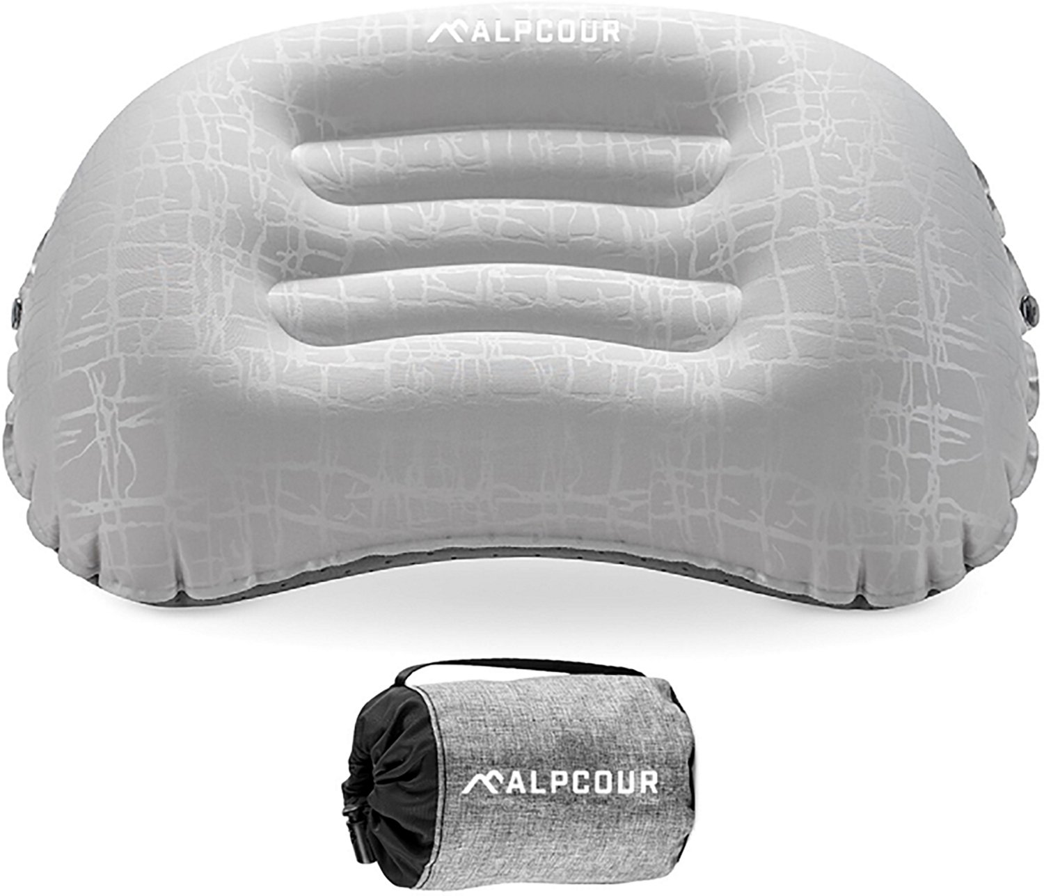 Bring comfort on the go with the Alpcour Large Inflatable Camping Pillow. The TPU material is tough and waterproof, and the anti-slip bottom pad stays put throughout the night.