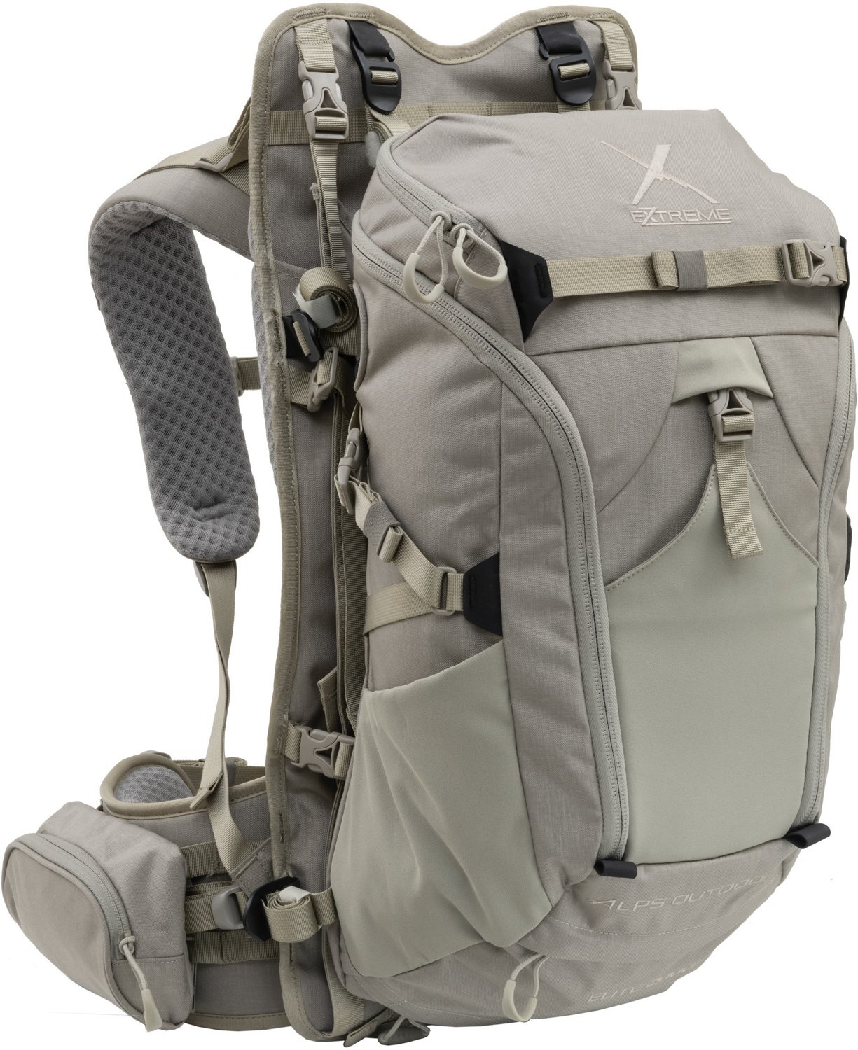 Feel prepared for your hunting excursion with the ALPS Outdoorz Elite Frame + 1800 pack. The 500D Nylon CORDURA® PU coated construction offers long-lasting use and blocks water from entering, and the 3D air mesh suspension with an anti-slip lumbar pad provides quiet movement and ventilation. The 3 compressed pockets deliver secure concealment, and the zippered main compartment includes 5 mesh pockets for keeping your gear in place during the trip.