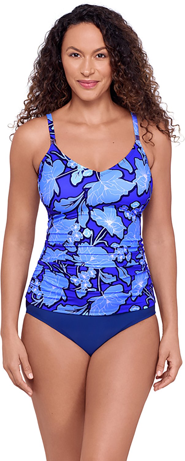 Go for a swim with the American Beach Women's Caribbean Rose Tankini. The nylon and spandex material provides a comfortable feel, while the Caribbean pattern offers a stylish look.