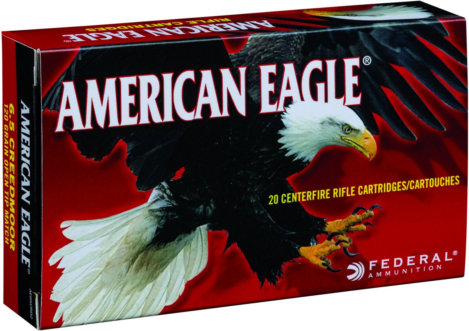 The American Eagle Open Tip Match 6.5 Creedmoor 120-Grain Centerfire Rifle Ammunition is ideal for target shooting and has a velocity of 2,900 feet per second. The bullets have an open tip match style and a weight of 120 grains. 20-round box.
