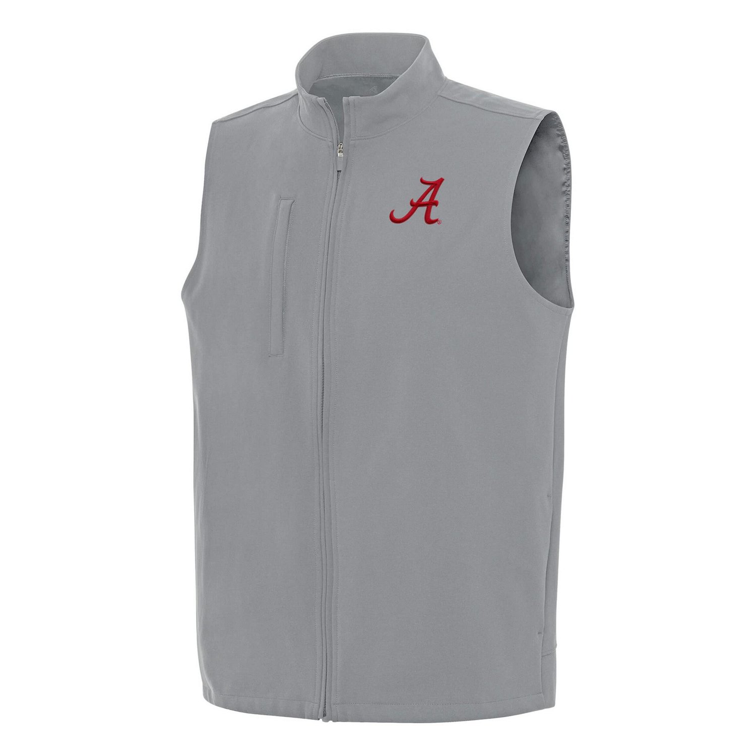 Showcase your Alabama Crimson Tide spirit with this Antigua Regard Full-Zip Vest This textured vest is a perfect midweight layer for moderate temperatures keeping you comfortable while showcasing your Crimson Tide pride With its convenient pockets and stylish mock neck this Antigua vest is a versatile addition to any Alabama fan's wardrobe