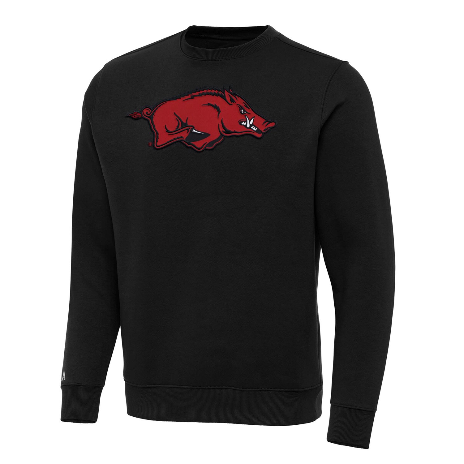 Add a new look to your Arkansas Razorbacks gear by grabbing this Big Tall Victory Crew Neck Pullover Sweatshirt from Antigua Crafted from a comfortable cotton and polyester blend this midweight sweatshirt features brushed-back fleece for added warmth during chilly game days Embroidered graphics proudly display your Arkansas Razorbacks pride while the rib-knit collar cuffs and bottom hem ensure a snug and comfortable fit