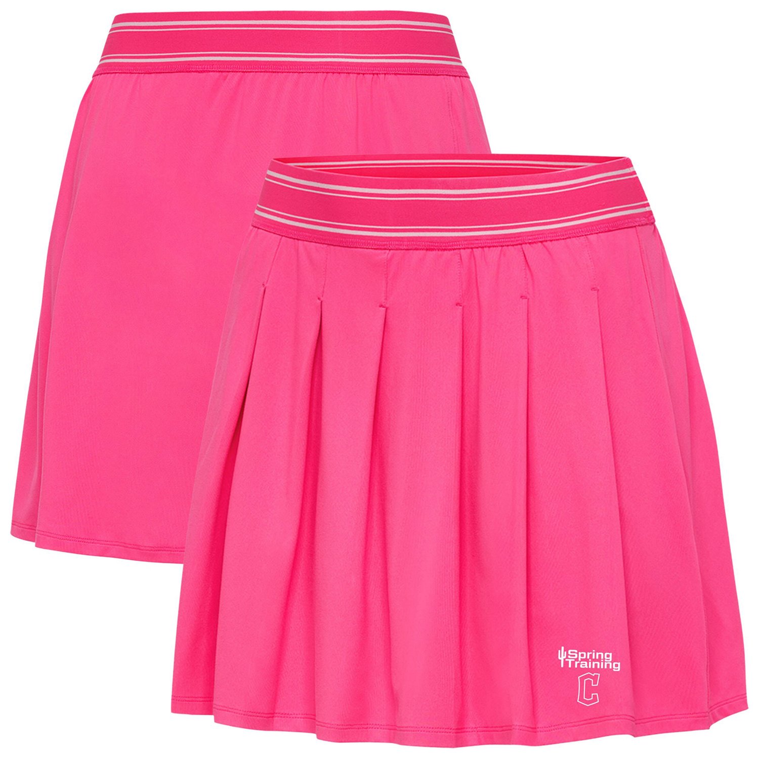 Show your Cleveland Guardians pride with this fun and sporty Spring Training Retro Skort from Antigua It's crafted from a blend of polyester and spandex offering a comfortable and flexible fit that moves with you The jacquard tip elastic waistband provides a secure and flattering fit while the built-in biker shorts ensure coverage and support for all-day wear