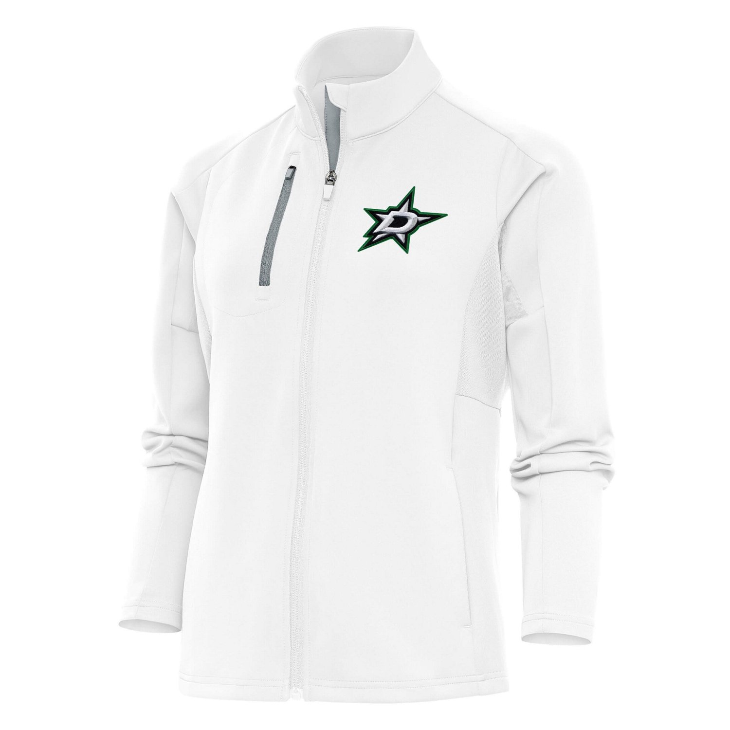 Show your Dallas Stars spirit with this Antigua Team Logo Generation Full-Zip Jacket This lightweight pullover features embroidered Dallas Stars graphics and a full-zip closure for easy on and off The spandex mesh underarm insets provide breathability while the zipper garage prevents neck irritation Whether you're at the rink or just out and about this pullover will keep you comfortable and stylish while showing off your Dallas Stars pride