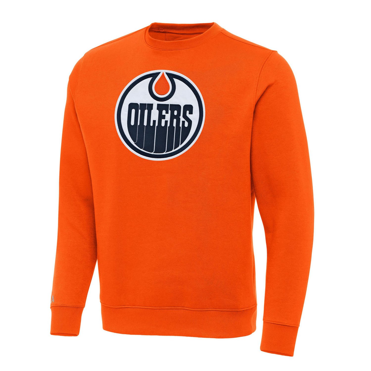 Be part of the Edmonton Oilers crew with this Victory Crewneck Pullover Sweatshirt from Antigua Made from a heavyweight fabric and featuring a brushed back fleece interior this sweatshirt is designed to keep you cozy and comfortable when the weather gets chilly With Edmonton Oilers graphics on the chest you won't have to sacrifice your team spirit to stay warm