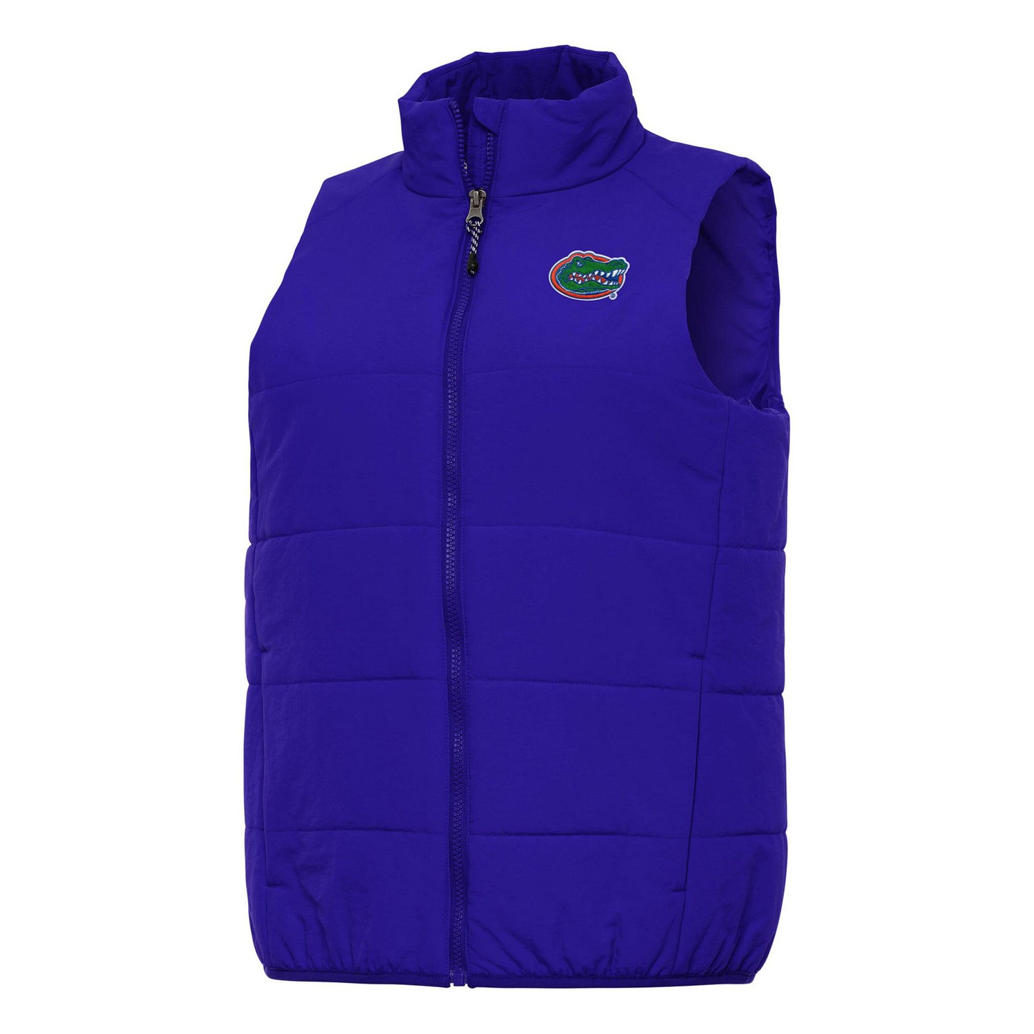 Stay warm while you cheer on the Florida Gators with this Antigua Experience Full-Zip Vest This stylish vest features a mock neck and elastic trim for a comfortable and flattering fit while the matte puffer jacket fabric offers exceptional breathability and quick-drying performance Two convenient side pockets provide a cozy haven for your hands and the quilted polyester fill delivers enhanced insulation to keep you warm during those chilly game days