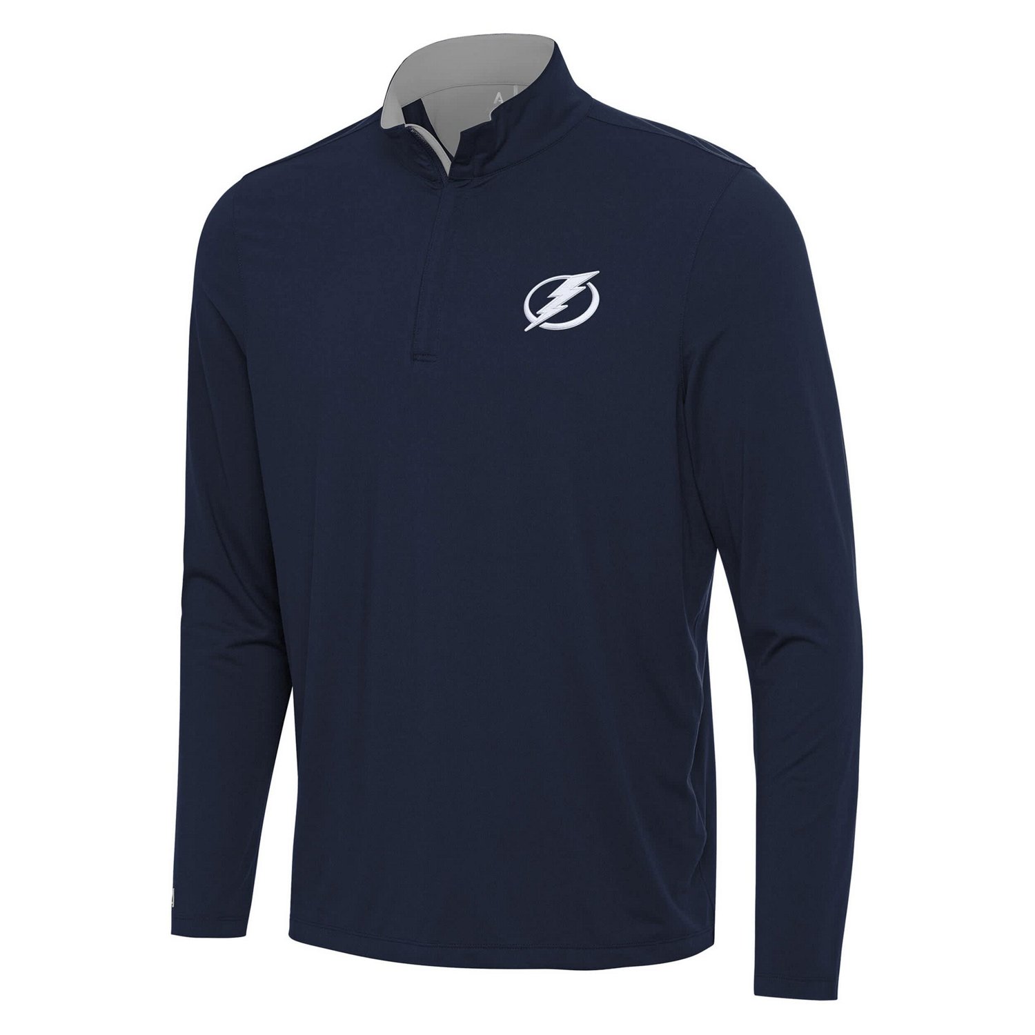 Add some Tampa Bay Lightning spirit to your wardrobe with this Antigua Content Quarter-Zip Pullover Top This lightweight pullover top is made from a blend of polyester and spandex brushed jersey fabric for a comfortable flexible fit that moves with you The embroidered Tampa Bay Lightning logo patch on the left chest and contrast-color detailing add a touch of style to your game day look