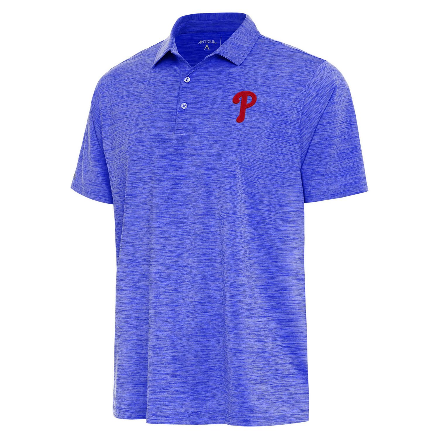 Step into the realm of true fandom with the Men's Antigua Heather Royal Philadelphia Phillies Layout Polo This stylish polo adorned with heat-sealed graphics embodies the spirit of the Philadelphia Phillies Its three-button placket ensures a secure fit while the breathable polyester and spandex blend keeps you comfortable throughout the game Whether you're cheering from the stands or simply showing your support this polo is the perfect way to express your unwavering loyalty to the Philadelphia Phillies