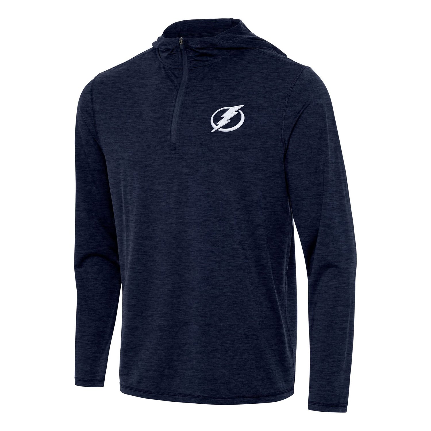 Show your Tampa Bay Lightning pride with this Antigua Tidy Quarter-Zip Hoodie This lightweight hoodie is crafted from a blend of polyester and spandex offering both comfort and flexibility for all-day wear The heat-sealed embroidered Tampa Bay Lightning logo on the left chest and the heathered fabric finish add a touch of team spirit and style to any outfit