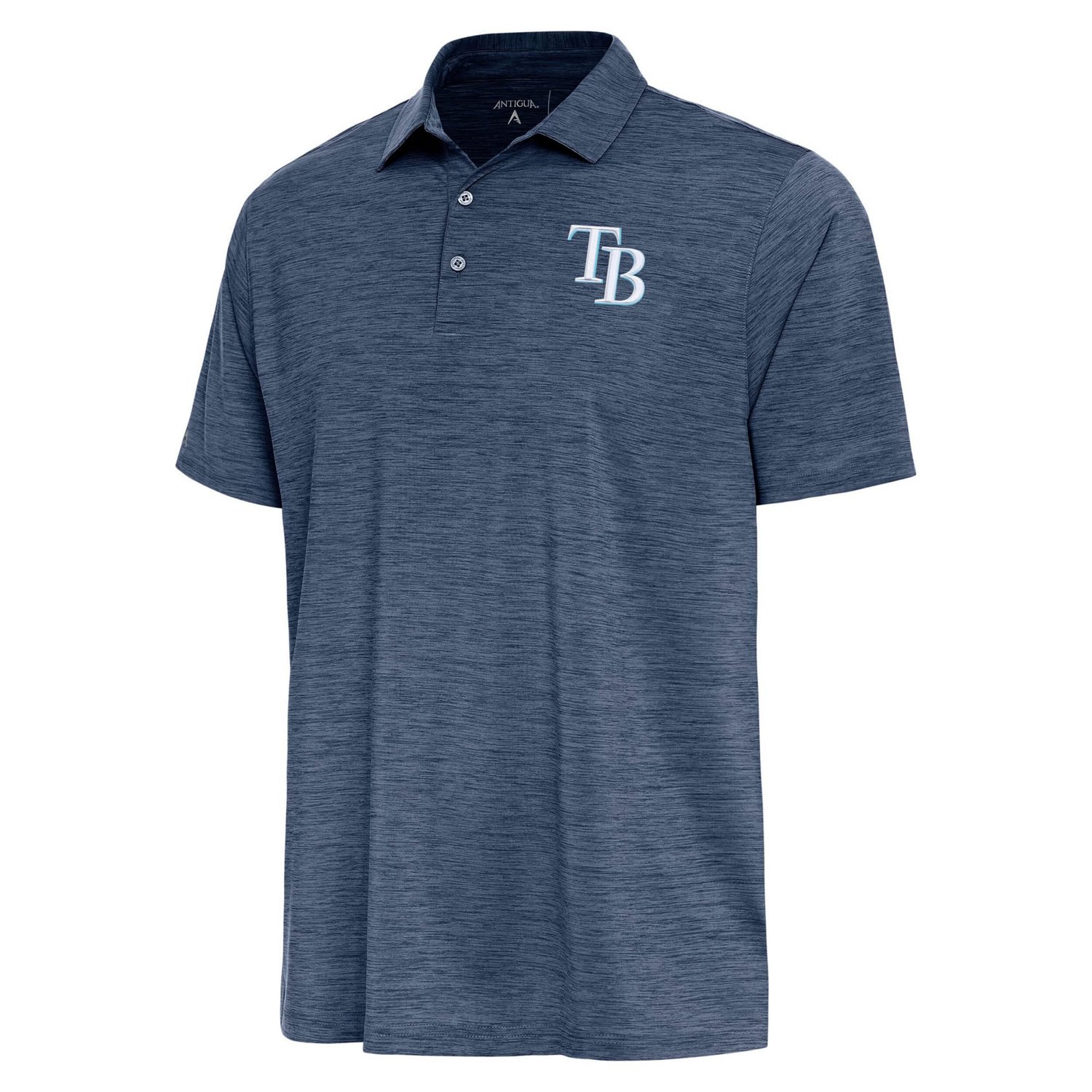 The Men's Antigua Heather Navy Tampa Bay Rays Layout Polo is a stylish and comfortable choice for any Rays enthusiast Its heat-sealed graphics and three-button placket add a touch of sophistication while the breathable polyester material ensures a comfortable fit Whether you're cheering from the stands or showing your support off the field this polo is the perfect way to represent your love for the Tampa Bay Rays