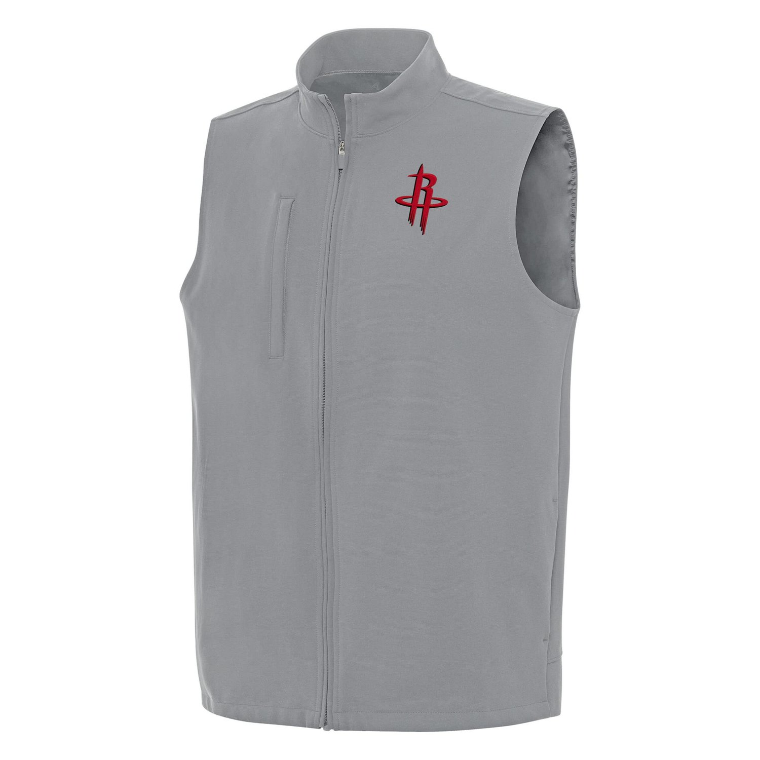 Show your Houston Rockets pride with this Antigua Regard Full-Zip Vest This stylish vest boasts a textured fabric finish and forward-slanted side seam pockets adding a touch of modern flair to a classic design The embroidered team patch heat-sealed on the left chest proudly displays your Houston Rockets allegiance
